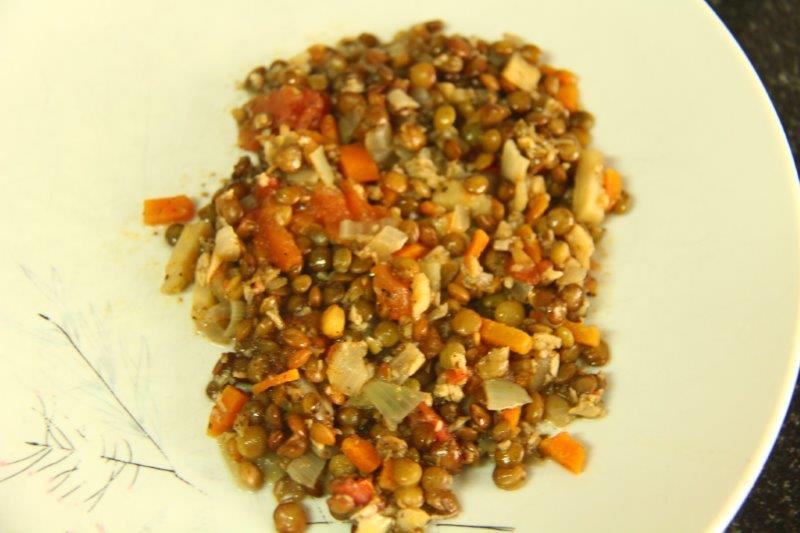 מנה צמחונית, טעימה, שילוב של עדשים ירקות עם תיבול בדגש השום.