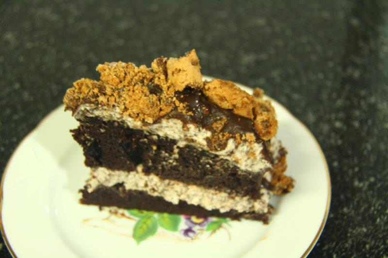 עוגת שכבות עשירה בשוקולד.